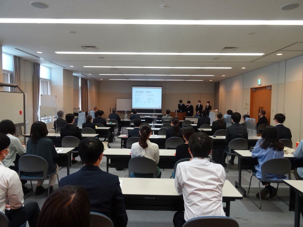 発表会は、社長や上席、先輩社員たちの前で、1班あたり約20分の発表を行いました。準備した発表資料は、図やアニメーション機能を使用し、視覚的に分かりやすいように工夫していた班もあれば、シンプルで簡潔にまとめながらも写真を載せる等工夫を行っていた班、デザインを統一し、強調したい部分は文字の大きさを変えていた班もありました。